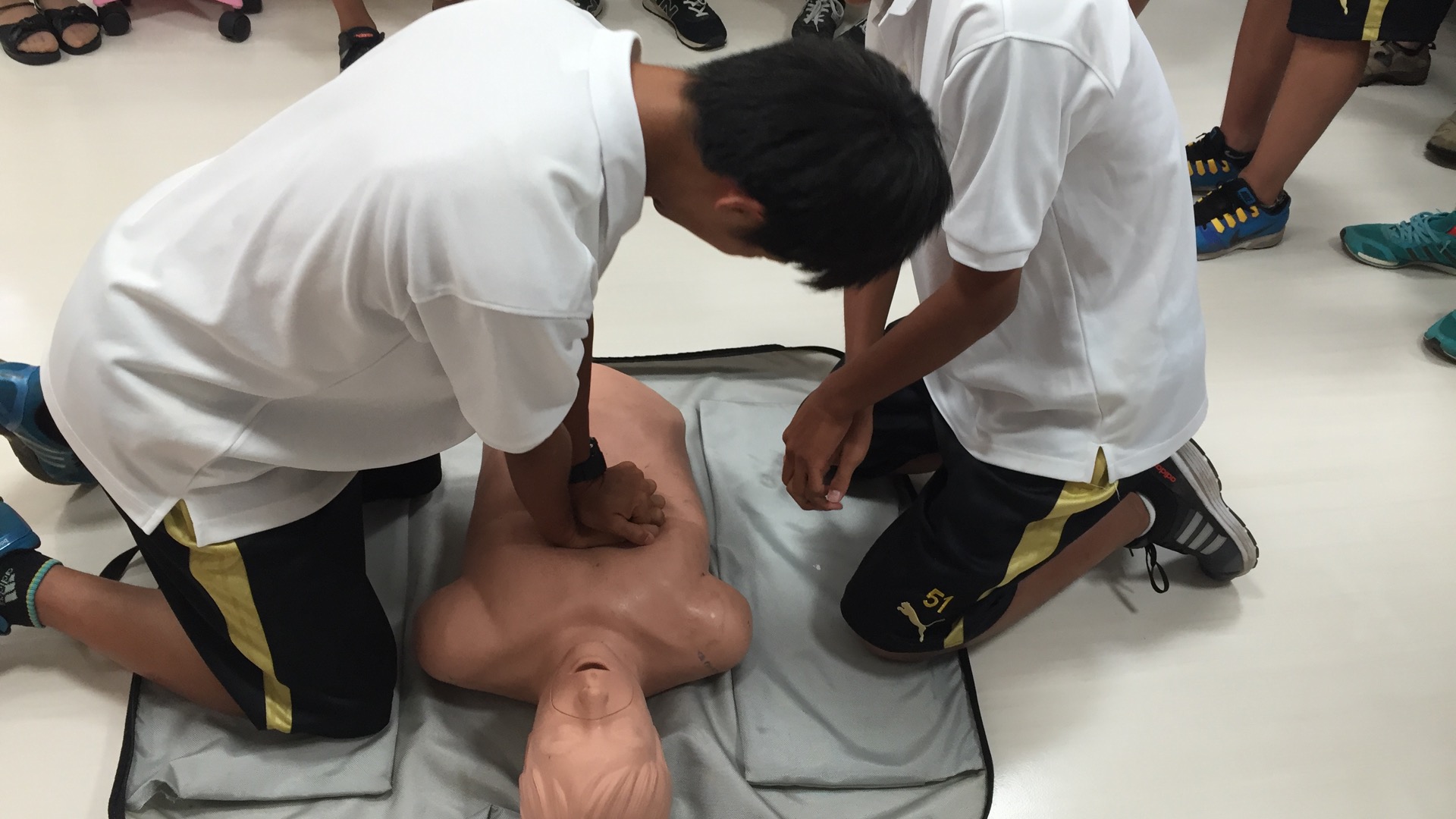 8月19.20日の二日間にわたり「AED講習会」を行いました。当初、心肺蘇生とAEDの使い方の再確認を行う目的で開催を企画したところ、高校生やお母さん方を中心に予想以上の40名の参加希望がありました。当日は、救急救命士さんにも来ていただいて、人形モデルを使用し心肺蘇生とAEDの使い方の実演練習を参加者全員が行い、有意義な講習会を行うことができました。