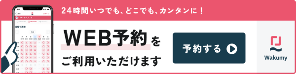 Wakumy(WEB予約システム)を開いたら、ご希望の診療メニューを選択し、カレンダーから日時をお選びください。