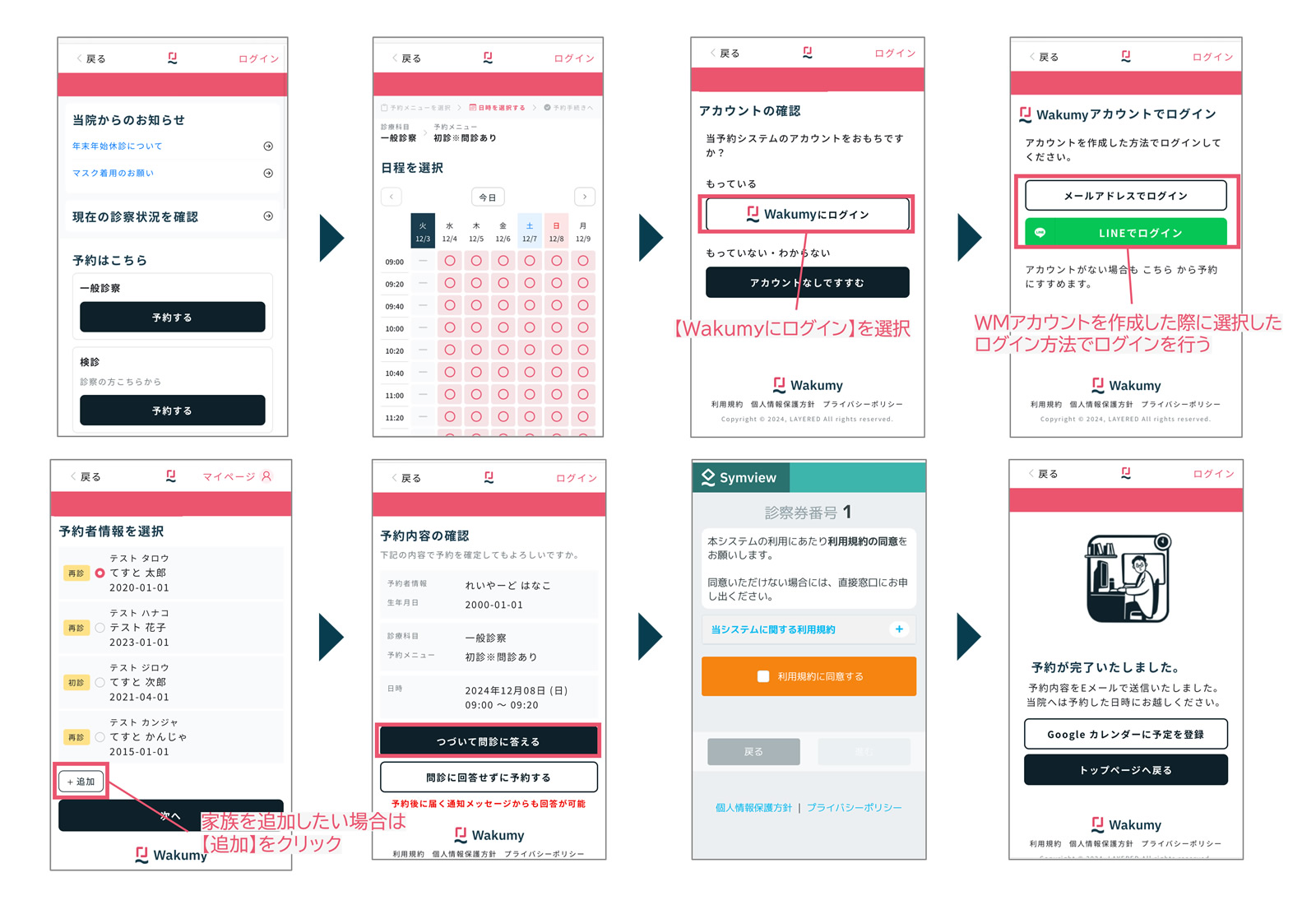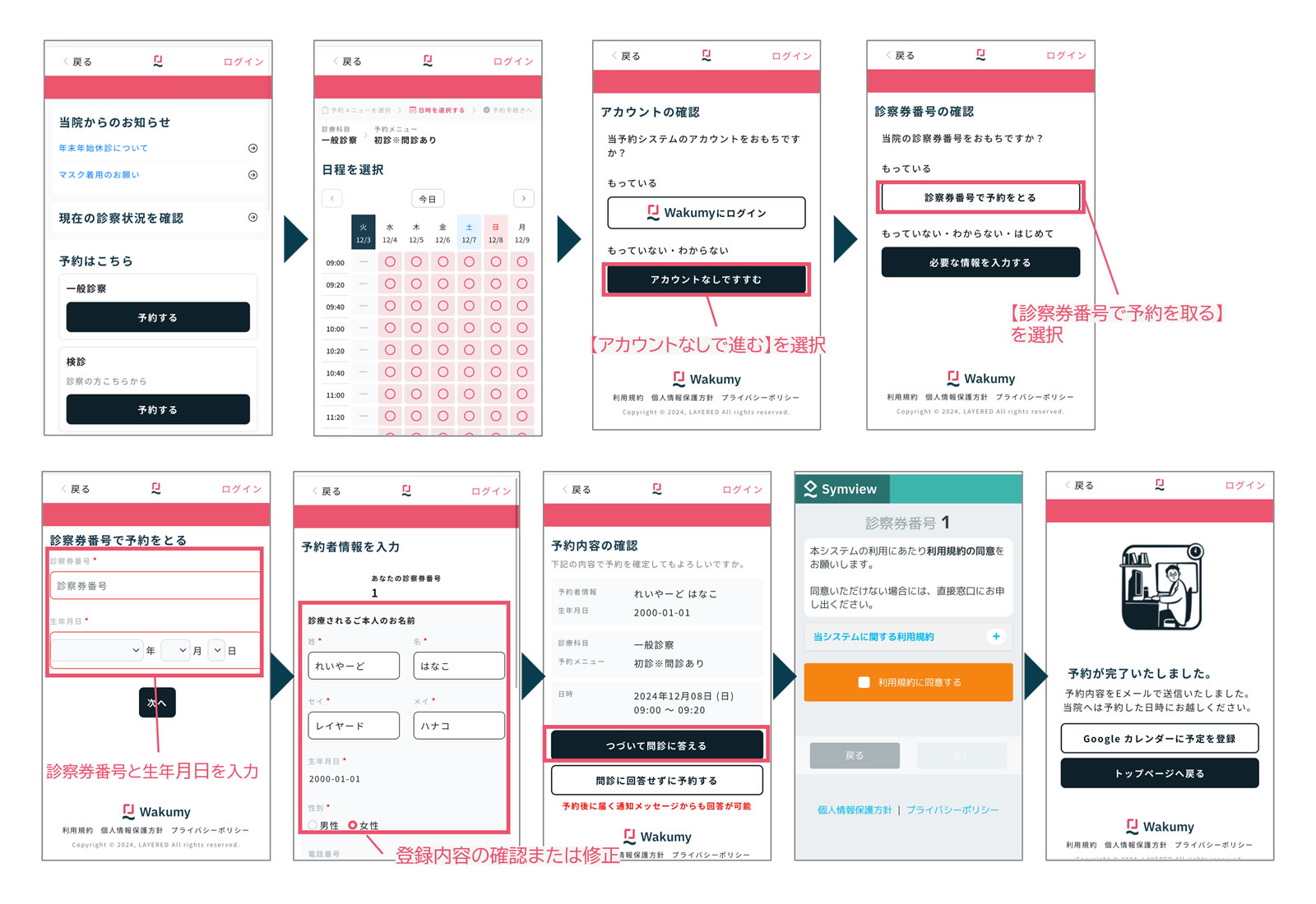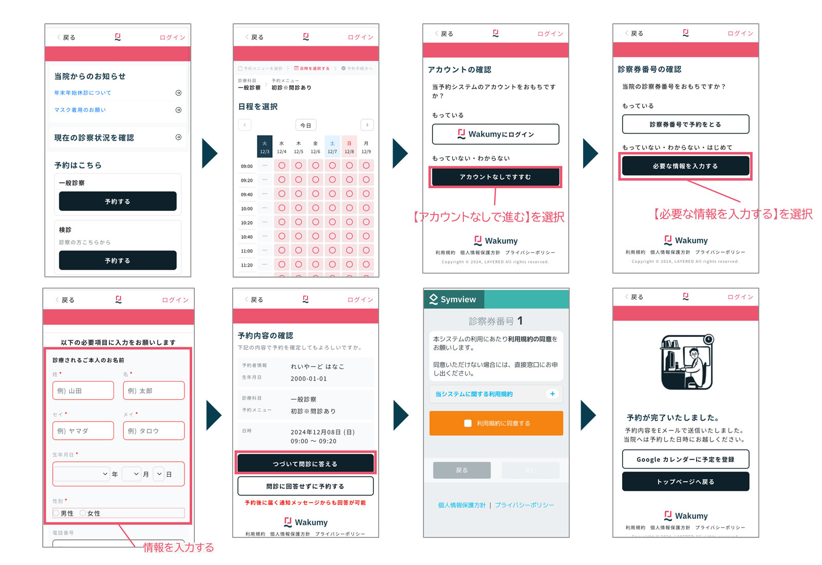 予約が完了しましたら画面の指示に従って受診前にWEBでの問診システムのご記入をお願いしております。